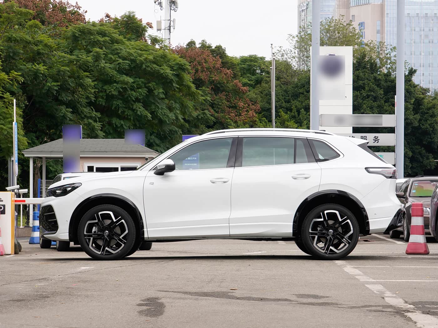 我们首先来看新车的外观设计方面,2026款途观L PRO延续了家族式设计语言,但通过细节创新展现出更具攻击性的视觉效果。R-Line运动套件的加持让前脸更具辨识度,横向镀铬饰条与LED大灯组形成完美衔接,营造出宽体低趴的视觉效果。全新设计的IQ.Light灵眸矩阵大灯不仅具备自适应远近光功能,更通过参数化设计呈现出独特的科技美感。下包围处的运动化设计配合两侧导流槽,既优化了空气动力学性能,又提升了整车的运动气质。